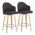 Ahoy - Mid-Century Modern Fixed Height Counter Stool With Natural Legs / Round Chrome Footrest (Set of 2) - Charcoal