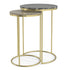 • Hand-finished metal base in Gold and two contrasting Marble tabletops, one in Grey, the other in Natural.