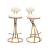 Round Bar Stool Armless Velvet Barstools With Back (Set of 2) Upholstered Counter Chair For Dining Room, Kitchen Island - Gold / Creamy White