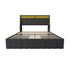Full Size Bed Frame With LED Lights, 4 Drawers, Winged Headboard Upholstered - Dark Gray