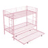 Modern Metal Bunk Bed With Trundle, Durable Steel, Twin Over Twin - Pink