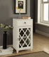 • Versatile Design: The Ceara White Finish Accent Table features a compact design with one drawer and a glass door, making it a stylish and functional addition to any space.