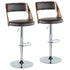 Cecina - Mid-Century Modern Adjustable Height Barstool With Swivel With Oval Footrest (Set of 2) - Chrome / Walnut / Brown