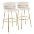Cinch - Glam / Art Deco Fixed Height Barstool With Swivel With Round Footrest (Set of 2) - Gold / Cream
