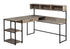 • Worksurface Layout: The desktop is divided into two segments, with a large panel overlapping the storage unit with a hutch, creating a smaller, lower workspace and additional storage cubby for flexibility.