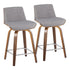 Corazza - Mid-Century Modern Fixed Height Counter Stool With Swivel With Square Footrest (Set of 2) - Walnut / Light Gray