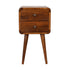 • Curved nightstand - Endlessly versatile, this curved nightstand table makes a perfect stand for nibbles, drinks, or a lamp. It will prove handy all over your home and is made from 100% solid mango wood and has a fine finish. It has curved edges which will fit into any home/living space. It also comes with 2 drawers that come with shiny knobs and 4 Nordic style legs.