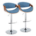 Curvo - Mid-Century Modern Adjustable Barstool With Swivel With Rounded T Footrest (Set of 2) - Chrome / Walnut / Blue