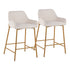 Daniella - Contemporary / Glam Fixed Height Counter Stool (Set of 2) - Gold / Cream