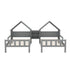 Double Twin Platform Bed With House Shaped Headboard And Built In Nightstand - Gray