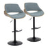 Fabrizzi - Mid-Century Modern Adjustable BarStool With Rounded T Footrest (Set of 2) - Walnut / Black / Blue