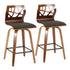 Folia - Mid-Century Modern Fixed Height Counter Stool With Swivel With Footrest (Set of 2) - Walnut / Light Gray / Black