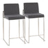 Fuji - Contemporary High Back Counter Stool (Set of 2) - Gray - Faux Leather