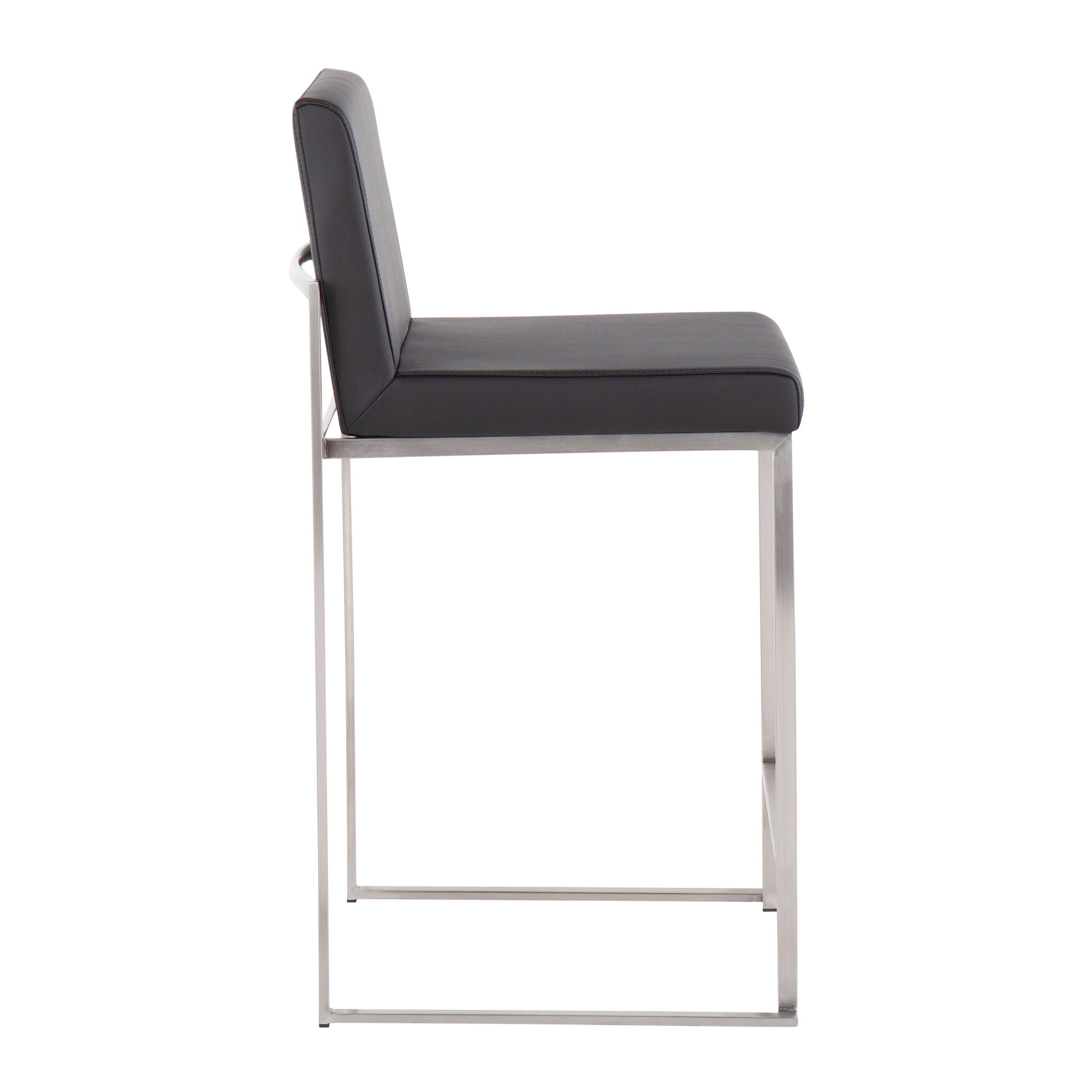 Fuji - Contemporary High Back Counter Stool (Set of 2) - Black - Faux Leather