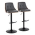 Gianna - Mid-Century Modern Adjustable Barstool With Swivel With Rounded T Footrest (Set of 2) - Black / Walnut / Gray