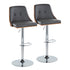 Gianna - Mid-Century Modern Adjustable Barstool With Swivel With Oval Footrest (Set of 2) - Chrome / Walnut / Gray