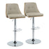 Gianna - Mid-Century Modern Adjustable Barstool With Swivel With Oval Footrest (Set of 2) - Chrome / Walnut / Cream
