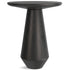 • Features a sleek design with a circular tabletop and flared base that tapers at the bottom.