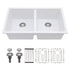 Kitchen Sink Double Bowl Granite Composite Undermount 33" X 19" - White