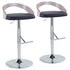 Grotto - Contemporary Adjustable Height Barstool With Swivel With Straight T Footrest (Set of 2) - Chrome / Light Gray / Black