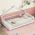 Twin House-Shaped Bedside Floor Bed With Guardrails, Slats, Without Door - White