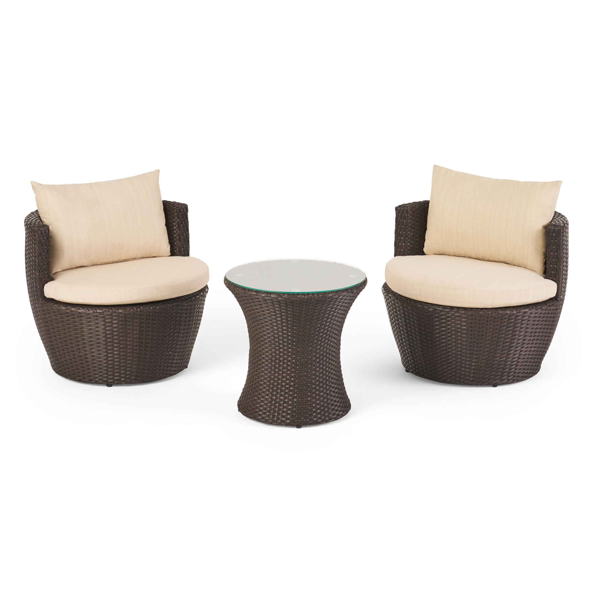 Kono - 3 Pieces Chat Set Outdoor Furniture - Brown / Beige