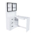 L Shaped Computer Desk With Glass Cabinets, Built In LED Lights, USB Charging Ports, And Keyboard Tray - White