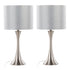 • High-Quality Finish: Featuring a brushed nickel finish and topped with a metal finial and drum shade, the lamps offer a contemporary and stylish look.