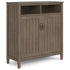 • Features two doors leading to large storage compartment with two adjustable shelves and two open top cubbies with cord management cut-outs for easy installation of TV and media components