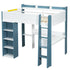 Full Size Loft Bed With Built In Storage Shelves, Clothes Rail, And Desk - White / Blue