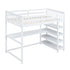 Full Size Loft Bed With Storage Shelves And Under Bed Desk - White