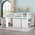 Full Loft Low Study Bed With Cabinet, Shelves And Rolling Portable Desk, Multiple Functions - White