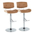 Lombardi - Contemporary Adjustable Barstool With Swivel With Straight T Footrest (Set of 2) - Chrome / Natural / Camel
