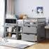 Twin Size Low Loft Bed With Rolling Desk, Shelf And Drawers - Gray