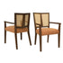 Mid Century Modern Arm Dining Chair (Set of 2) With Rattan Backrest - Caramel / Walnut
