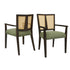 Mid Century Modern Arm Dining Chair (Set of 2) With Rattan Backrest - Dark Brown / Green