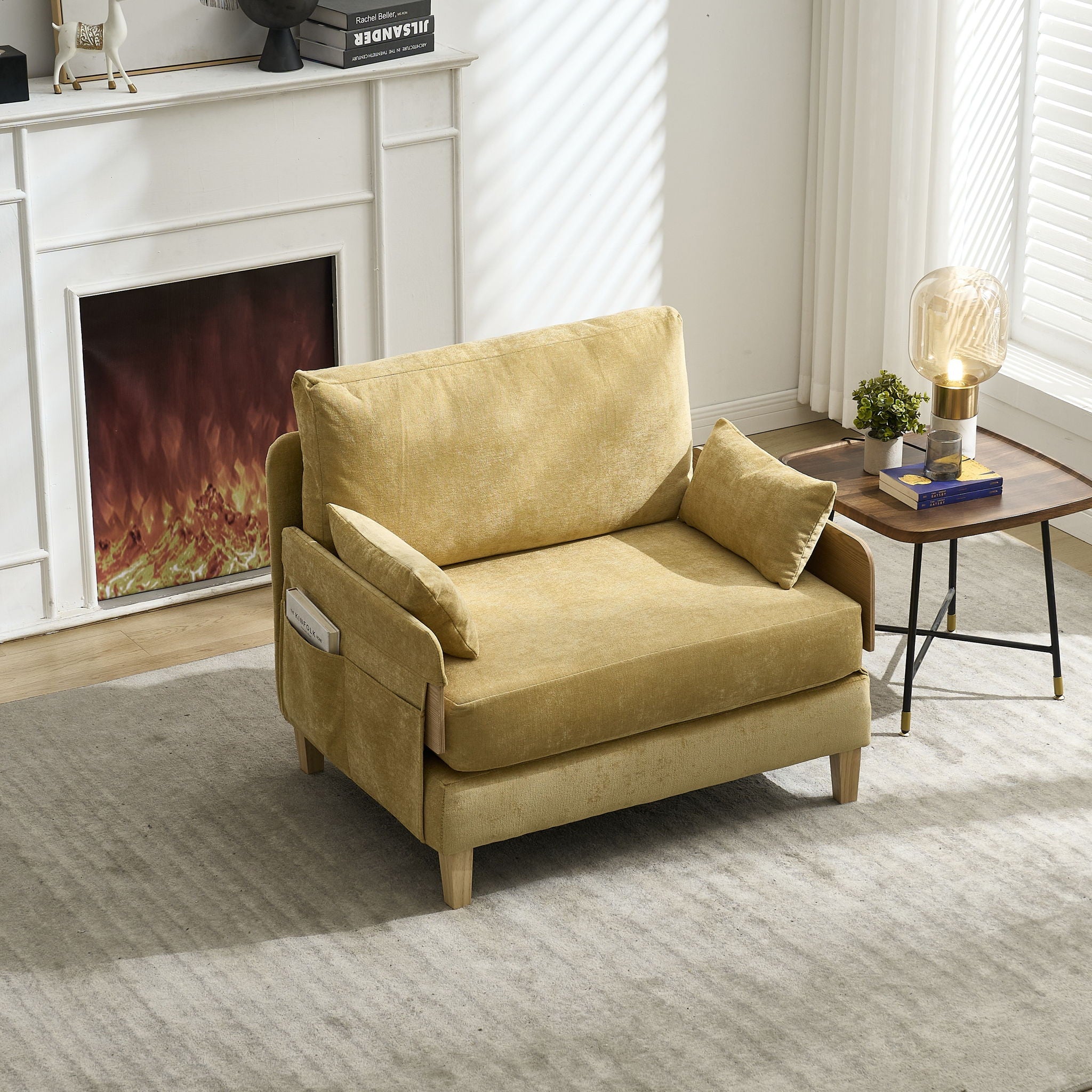 Mid Century Modern Foldable Sofa Bed Recliner, 3 - 1 Convertible Sleeper With 3 Pillows - Mustard Yellow