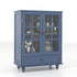 Vintage Buffet Cabinet With Double Glass Doors And Drawer, Storage Sideboard - Blue