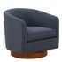 Miramar - Chenille Swivel Chair With Wooden Base And Plush Cushion - Blue