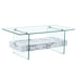 Modern 2 Tier Coffee Table Clear Tempered Glass And Wood Grain Multifunctional Storage Design - Natural Wood / Transparent