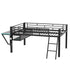 Full Size Modern Gaming Mid Loft Bed With Desk And LED Lights - Black