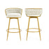 Modern Low Back Upholstered Counter Height Bar Stools (Set of 2) With Hand Woven Backrest & Metal Legs - Beige