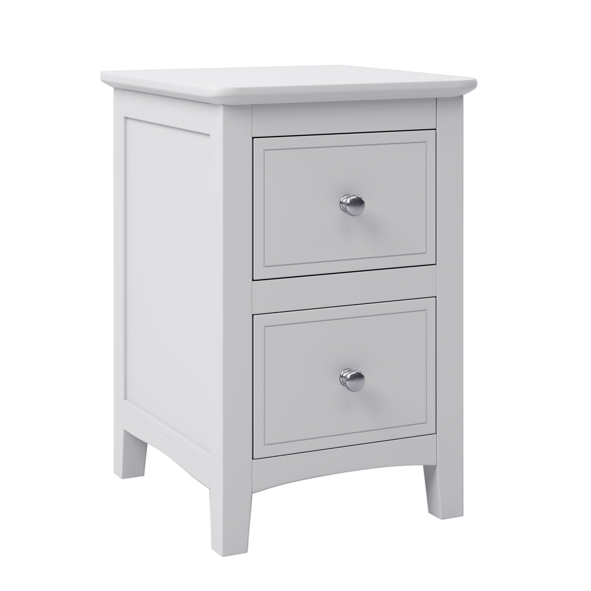 • Quality Materials: Made from pine solids and MDF boards, this nightstand features chic, brushed nickel hooded pulls, combining durability with a modern design aesthetic.