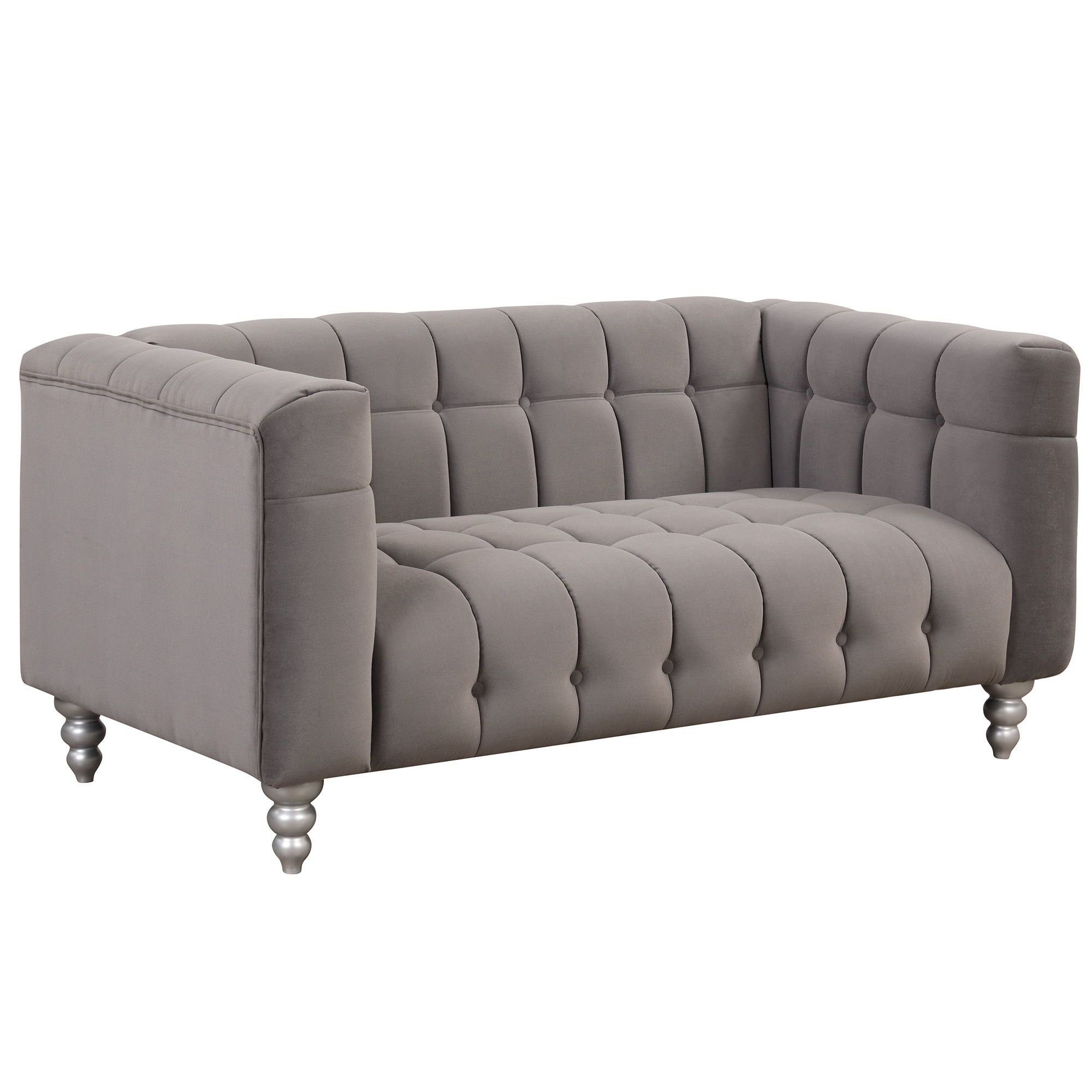 Modern Sofa Dutch Fluff Upholstered Sofa With Wood Legs, Buttoned Tufted Backrest - Gray