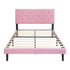 Twin Size Upholstered Platform Bed Frame With Button Tufted Linen Headboard - Pink