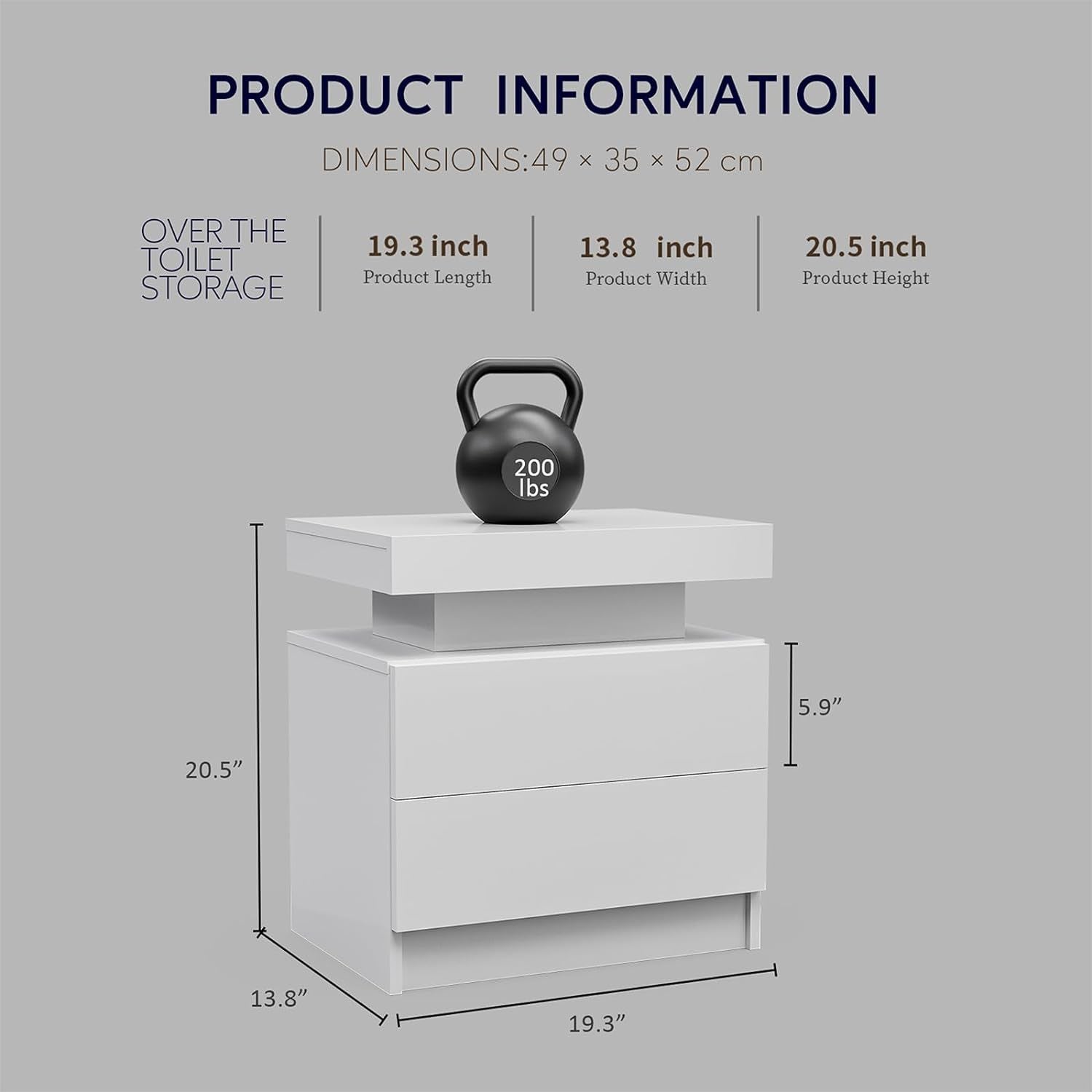 Nightstand LED, Bedside Table Cabinet With 2 Drawers For Bedroom