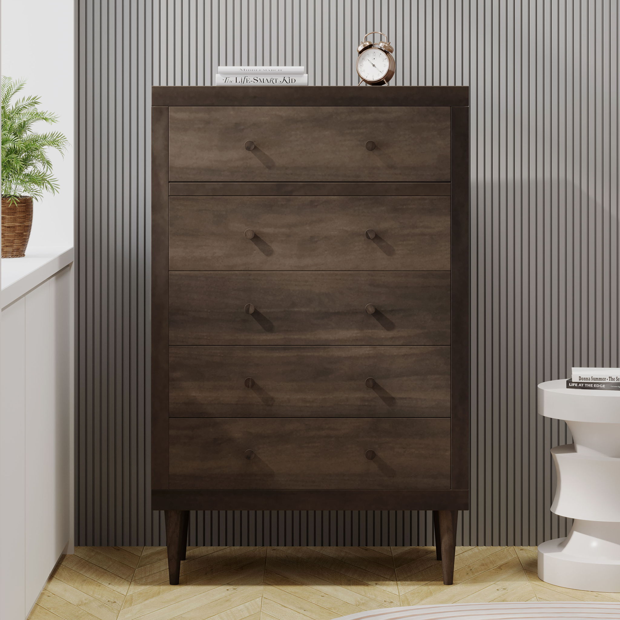 • Ample Storage Space: Five spacious drawers with dual knobs provide organized storage, perfect for bedroom or office essentials.