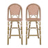 Outdoor Rattan French Barstool Set,, Bamboo, Seat Height - Teal Blue / White