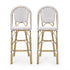 Outdoor Rattan French Barstool With Bamboo Aluminum Frame, Seat Height (Set of 2) - White / Black