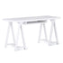 • Features a simple and wide, extra thick table top surface, integrated wood keyboard tray and sturdy sawhorse supports